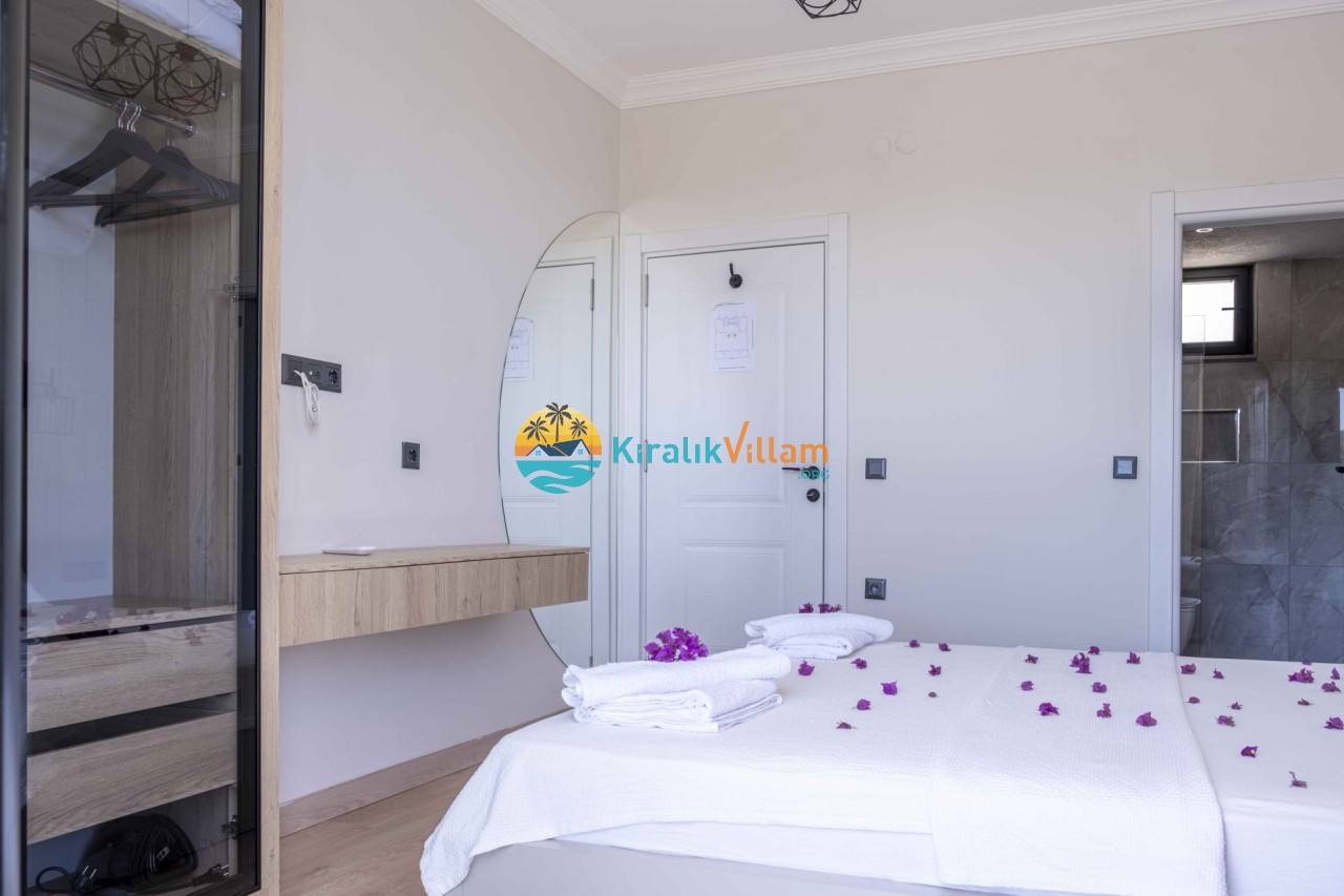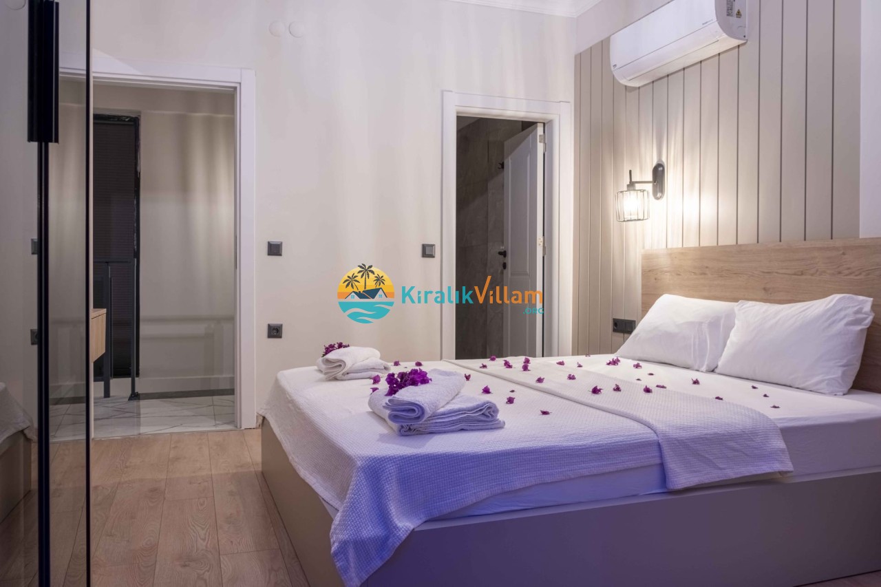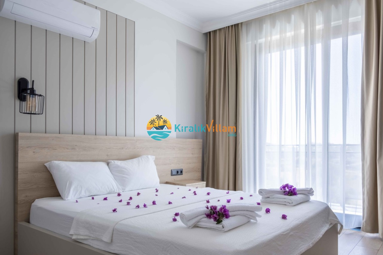 2.Yatak Odası: Bir adet çift kişilik yatak ,klima, komodin, elbise dolabı, makyaj masası, banyo ve tuvalet bulunmaktadır.