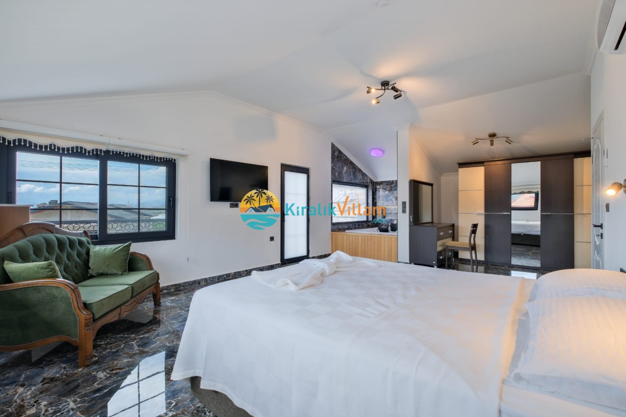 Villa Sembol, Fethiye merkezde yer alan 4 yatak odalı 8 kişilik kapasiteye sahip olan villamız geniş aileler ve arkadaş grupları için oldukça ideal bir seçenektir. Villa Sembol, Fethiye kiralık villa, saunalı villalar, jakuzili villalar, muhafazakar havuzlu villalar, merkeze yakın villalar, Fethiye tatil villaları kategorisinde yer almaktadır.