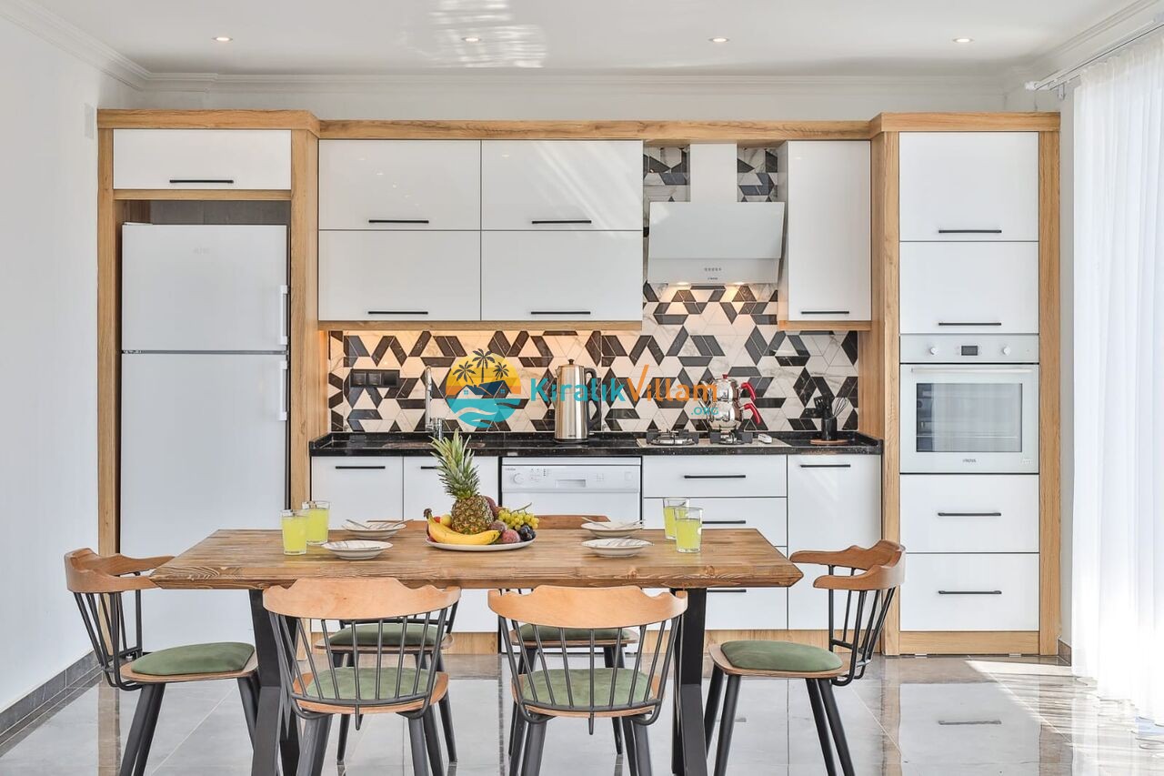 Amerikan mutfak, buzdolabı, bulaşık makinesi, çamaşır makinesi, ankastre fırın, ocak ve mutfak araç gereçleri bulunmaktadır.