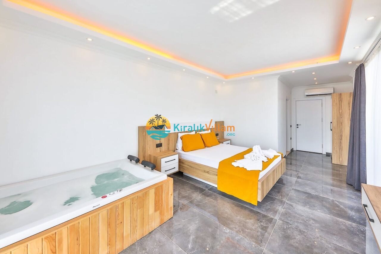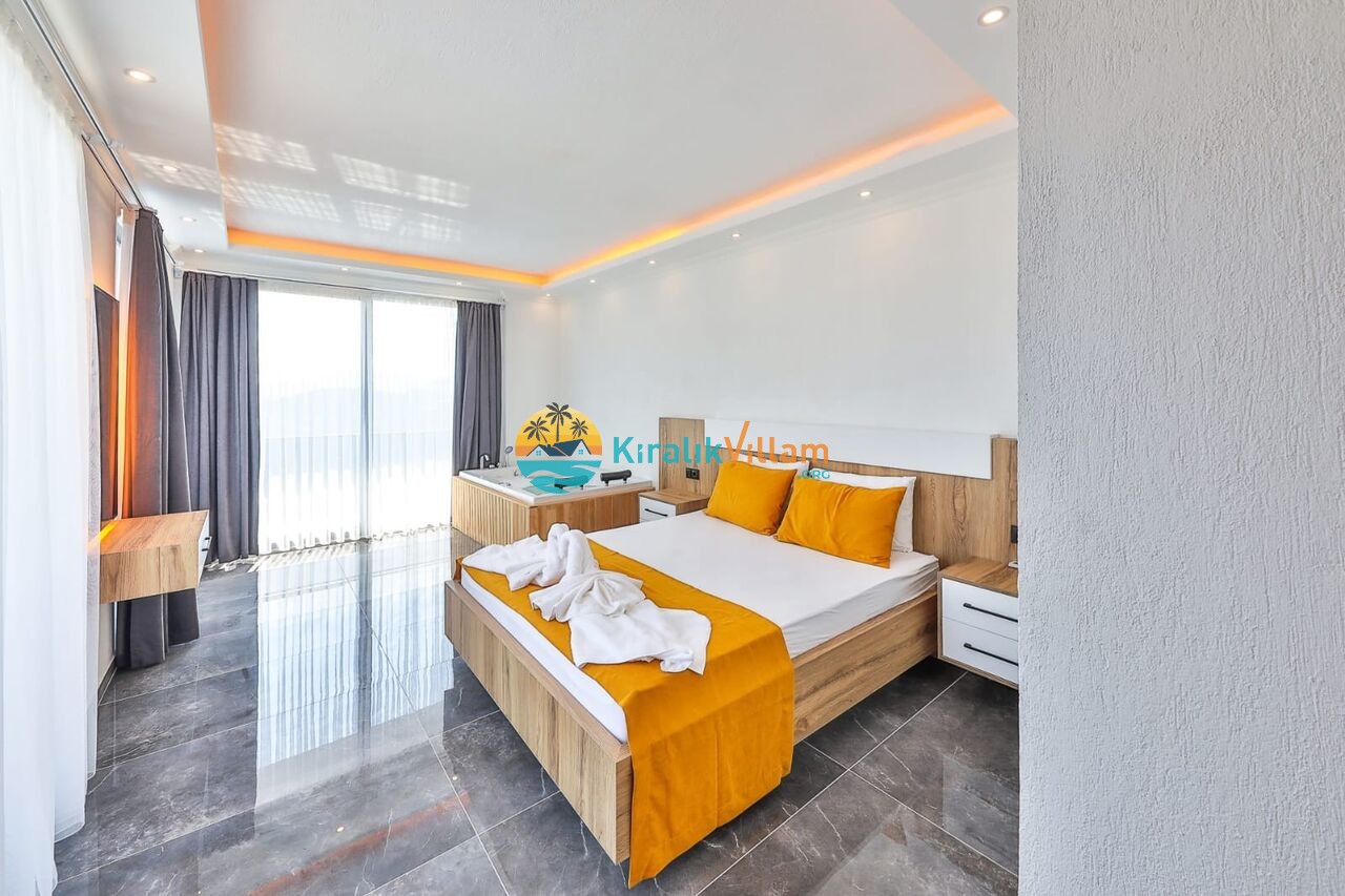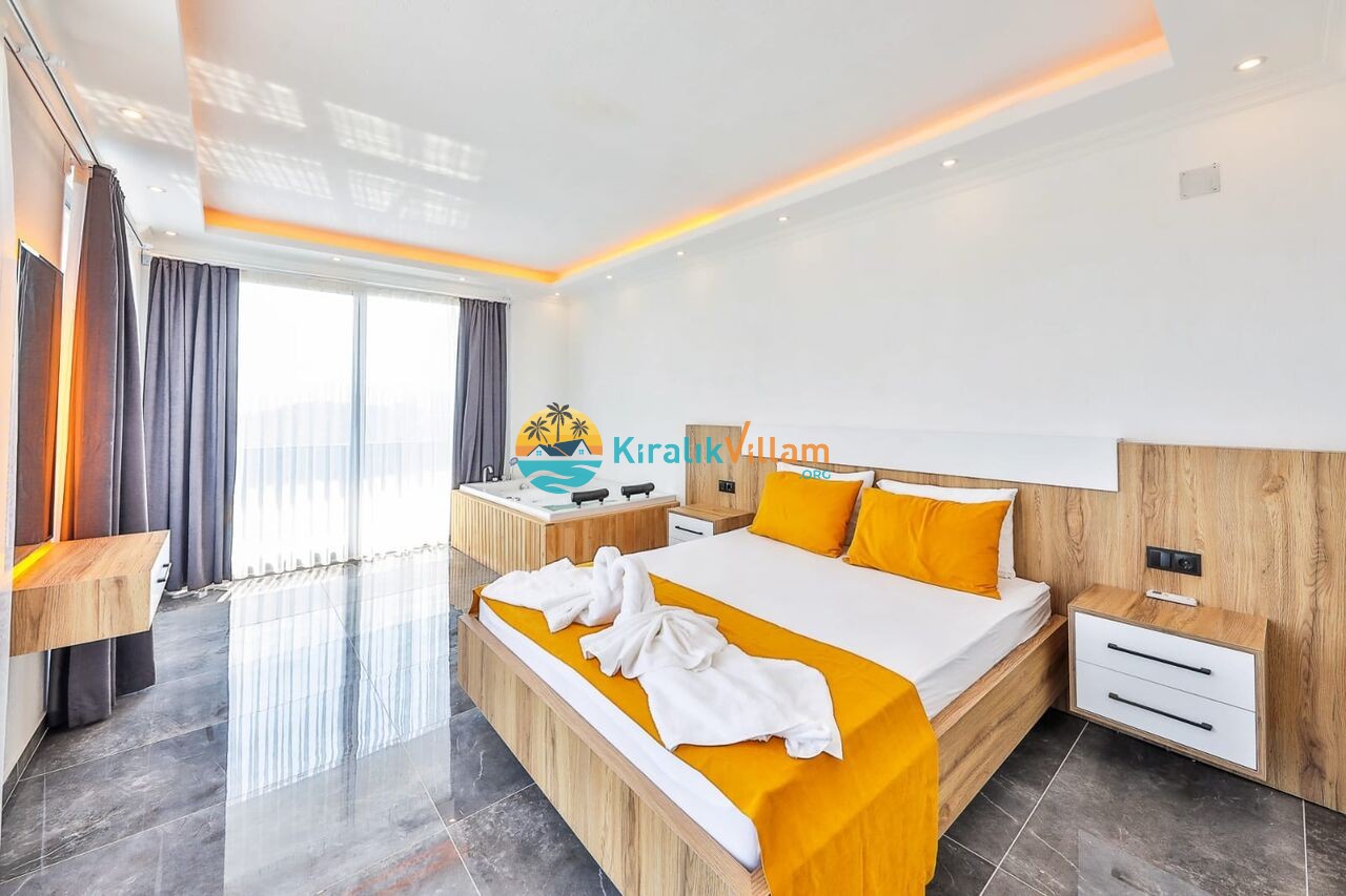 1 adet çift kişilik yatak, klima, jakuzi, elbise dolabı, komodin, makyaj masası, komodin ve banyo-wc bulunmaktadır.