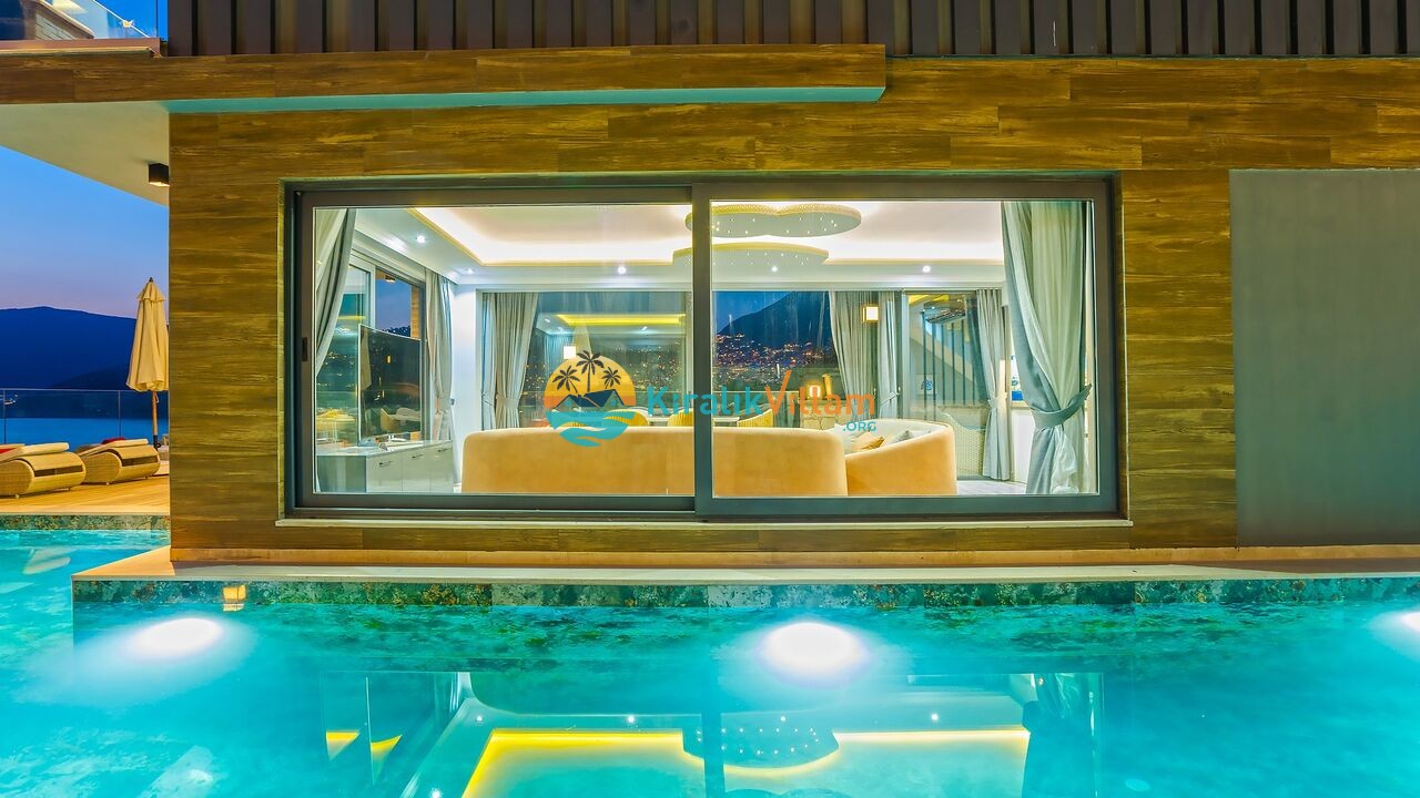 Havuz ve Bahçe: Deniz manzaralı özel yüzme havuzu, şezlong, güneş şemsiyesi, bahçe yemek masası ve barbekü bulunmaktadır.